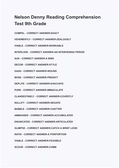 Download NELSON DENNY 9TH GRADE TEST PDF